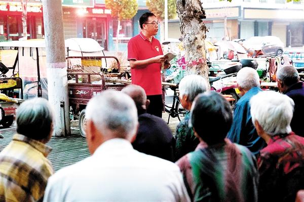 每次就餐前,志愿者会向前来就餐的人员讲解近段时间爱心粥屋的捐助情况,引导大家常怀感恩之心,感恩党、感恩国家。志愿者也会聚集到一起宣读誓词:我自愿加入志愿组织,热爱祖国……