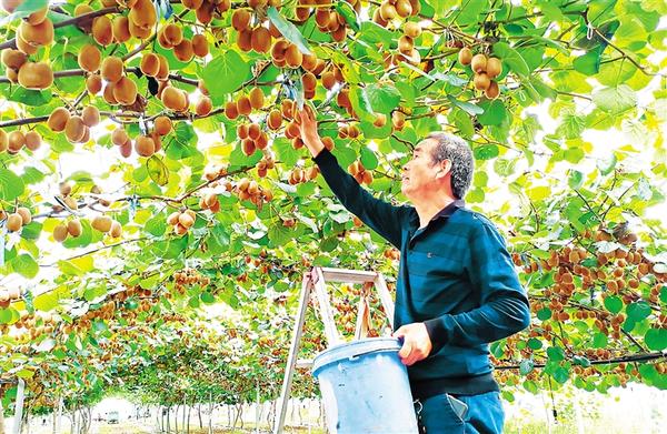王楼村村民在采摘猕猴桃。记者 徐松 摄