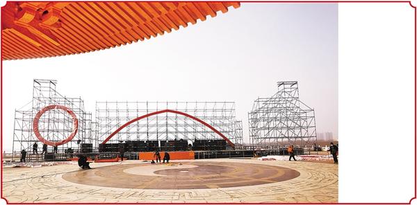 传承千年的淮阳太昊陵庙会今年又有了新名称——第一届周口伏羲文化旅游节。3月7日上午,记者在淮阳伏羲文化广场看到,为开幕式准备的大型舞台正在紧张搭建中,用于伏羲书展的展棚基本搭建完毕。 第二届伏羲书展主题是“有质量的阅读,有深度的思考”。主展场设在伏羲文化广场,分为综合区、青少年区、特色区。另外,全市部分大型实体书店,也将在醒目位置悬挂或张贴伏羲书展宣传海报,积极开展阅读推广活动和优惠购书活动。 记者 杜欣 摄