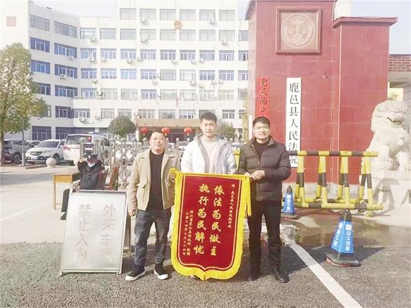 申请执行人向执行干警宋宏伟(中)送锦旗表谢意。