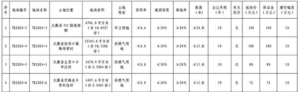 拍卖报价时间:TK2024-3地块:2024年3月29日9时30分;TK2024-4地块:2024年3月29日9时40分;TK2024-5地块:2024年3月29日9时50分;TK2024-6地块:2024年3月29日10时。