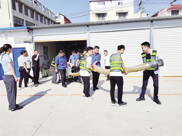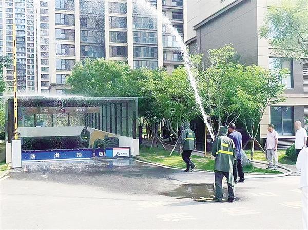 太昊路街道组织人员在辖区一居民小区地下车库入口处开展防汛排水应急演练。