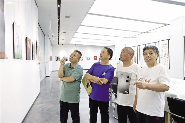 7月2日,沈丘县委宣传部、县文广旅局特别推出的“红色记忆——张埂油画作品展暨庆‘七一’书画精品联展”在县文化馆举办。这些书画作品展现了全县广大党员干部和社会各界群众“听党话、感党恩、跟党走”的坚定决心和昂扬向上的精神风貌。图为群众观看展览。记者 高洪驰 摄