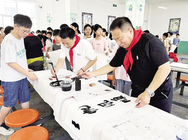 为让学生零距离接触书画艺术,感受中华文化的博大精深,营造浓厚的校园书画艺术氛围,6月25日,沈丘县文广旅局组织当地书画家走进纸店镇中心小学,现场挥毫泼墨,让学生感受书画艺术的魅力。