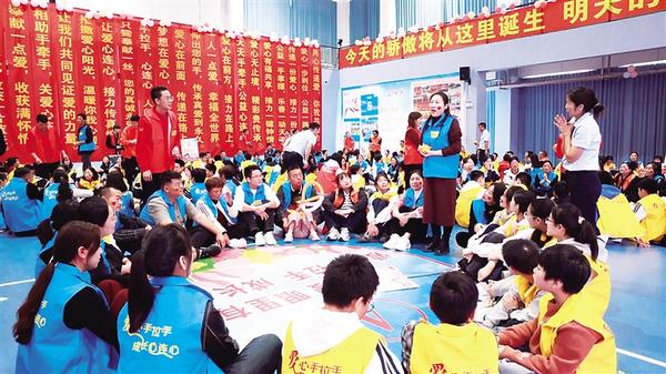 为进一步落实立德树人根本任务,推进“五育并举”,促进学生全面发展,10月26日,项城市莲溪初级中学举办“爱心手拉手 成长心连心”大型公益活动,采用游戏、练习、对话、分享等方式,让老师、学生、家长实现心理减负,为青少年创造更加有效、积极的成长环境。图为活动现场。记者 张志新 通讯员 祁海华 摄