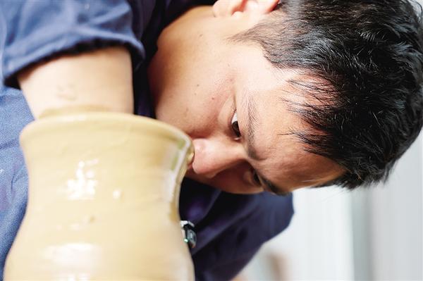 胡长征在拉坯。