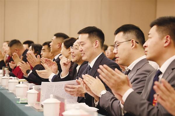 2月18日,参加市五届人大四次会议的川汇区代表团代表审议政府工作报告。图为代表们为精彩的发言热烈鼓掌。 记者 刘俊涛 摄