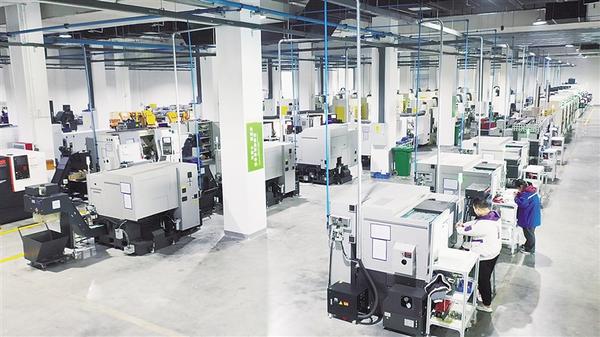 凯旺科技年产3500万套连接器生产车间一角。