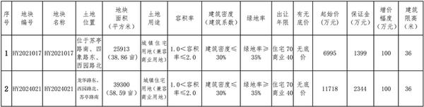 2.HY2024021宗地配建配套9班幼儿园及20个托位的托儿所,幼儿园建成后无偿移交政府。