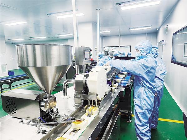 郸城县三大主导产业之粮食精深加工——盛元食品有限公司现代化面包生产线。