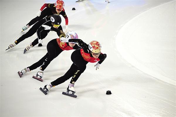 当日,2025-2026赛季中国杯短道速滑精英联赛第一站(承德)在河北省承德市冰上运动中心进行。新华社发 (王立群 摄)