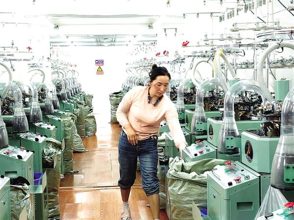 日前,记者走进位于商水县张庄镇的返乡创业园,只见智能化织袜车间一派繁忙景象,织袜机、自动缝头机等智能设备高效运转,工人在各自岗位上井然有序地忙碌着,各式各样的袜子源源不断地生产出来。据悉,目前,该园区日产袜子3万余双,产品远销国内外,年产值达3000余万元,为当地群众提供就业岗位400余个。