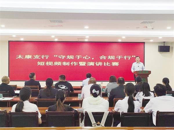 近日,农行太康县支行组织开展“守规于心 合规于行”短视频制作暨演讲比赛活动,推动合规文化融入经营管理各环节,为服务地方经济、守护金融安全提供坚实保障。杨高杰 冯振涛 摄