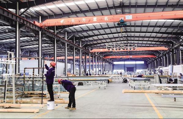 河南中玻玻璃中空玻璃充氩气生产车间。