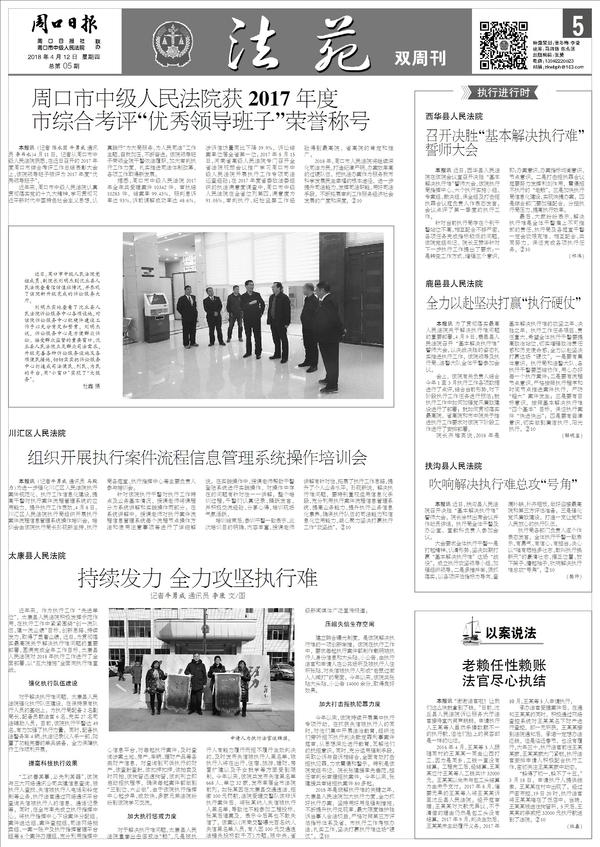 周口市中级人民法院获2017年度市综合考评“优秀领导班子”荣誉称号