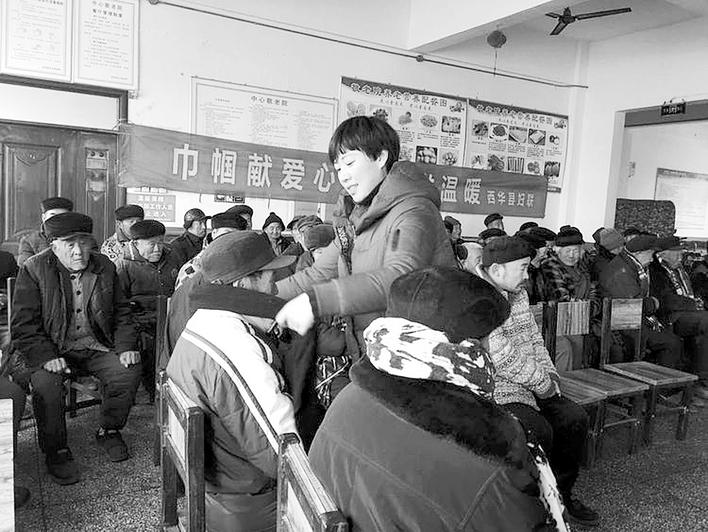 为弘扬“尊老、敬老、爱老、助老”的优良传统,元旦节前夕,西华县妇联联合爱心人士卜梅香到敬老院开展“巾帼献爱心 寒冬送温暖”活动。卜梅香捐赠给西华县敬老院160位老人每人一条围巾,价值3000余元。②6赵莎莎 摄