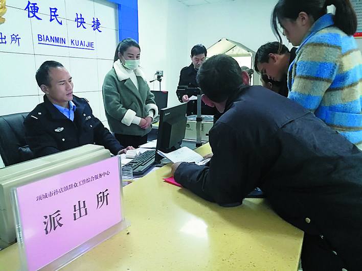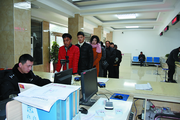 派出所户籍窗口是各镇办群众工作综合服务中心接待人数最多的窗口。图为南顿镇群众在户籍窗口排长队办理业务。