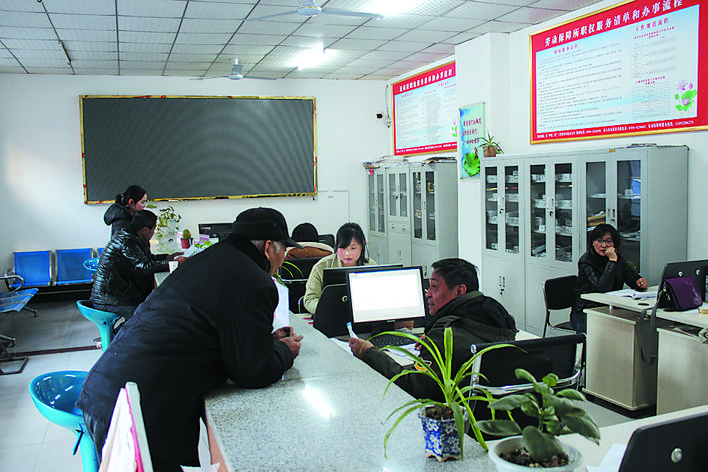 付集镇农民在群众工作综合服务中心农业窗口办理业务。