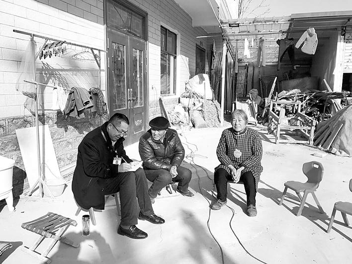 近日,沈丘县北杨集镇在脱贫攻坚中认真开展大宣传、大走访、大整改活动。镇党委一班人率先垂范,入户走访,宣传党的扶贫政策和孝廉文化,提高群众对政策的知晓率和满意度;认真了解贫困户、五保户、低保户等的生活状况,发现问题及时解决。图为该镇领导在群众家中走访。王魁 李艳杰 摄