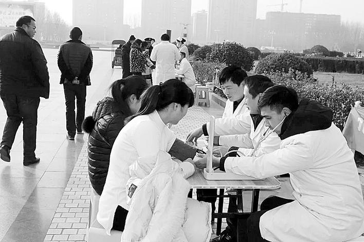 2017年12月27日,开发区深入开展“五城联创”宣传活动。图为开发区卫计委、计生协会在开发区人民广场开展“把健康带回家”专项志愿义诊活动。陈锡盛 摄