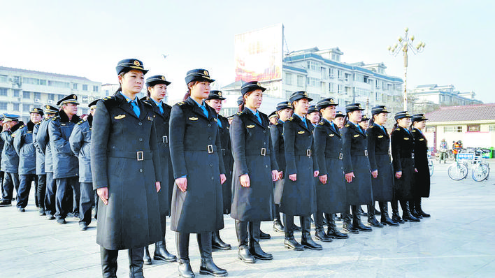 西华县城管局在女娲广场举行女子执法中队成立暨授旗仪式。②3