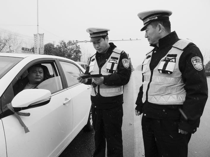 入冬以来,市公安局交警支队直属三大队积极开展“平安守护”专项行动。该大队结合辖区过境车辆多、警力不足等实际情况,严格按照要求查处各类交通违法行为,纠正违章、违法行为4000多起,查处涉牌、涉证人员46名,确保辖区平安畅通。图为1月3日,该大队大队长孙可杰带领交警在开元大道,迎风冒雪检查过往车辆。 记者 徐如景 摄