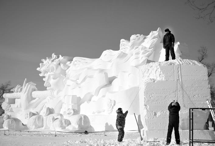 哈尔滨:国际雪雕比赛开铲