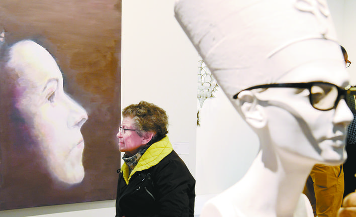 1月11日,在美国旧金山,参观者在“雾”设计和艺术展上观看展品。2018年旧金山“雾”设计和艺术展11日举行媒体预展。来自世界各地的45家画廊入选今年为期4天的展览。展览至14日结束。新华社记者 吴晓凌 摄