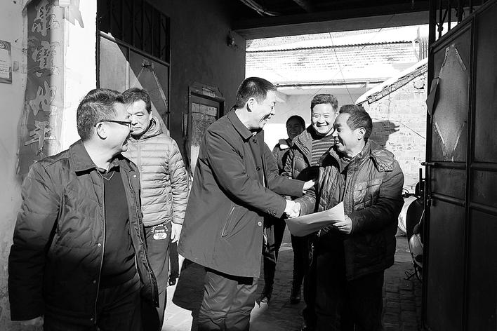当日上午,闫立超一行带着被褥、大衣、米、面、油等慰问品,首先来到大张行政村贫困户张广友的家里。屋内屋外仔细看过后,闫立超一行在院中就坐和张广友亲切地拉家常,嘘寒问暖,详细了解他的家庭情况和身体健康状况以及子女就读情况。当听说张广友的孩子在学校获得了“学习标兵”的荣誉称号后,闫立超格外高兴。“如果有什么困难,按我之前给你留的电话,随时可以联系我,我是专门为你服务的。”闫立超鼓励张广友一定要有好的心态,树立度过难关的信心,早日实现脱贫,并将慰问金送到张广友的手中。