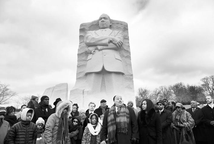 1月15日,在美国首都华盛顿,马丁·路德·金的儿子马丁·路德·金三世(中)在纪念活动上讲话。当日是马丁·路德·金纪念日,美国各地举办多种活动纪念这位黑人民权运动领袖。新华社发