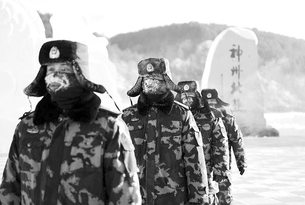 当日,位于祖国最北端的黑龙江省漠河县北极镇最低气温为零下45摄氏度,驻守在这里的边防官兵在极寒天气里徒步巡查边境一线。新华社发