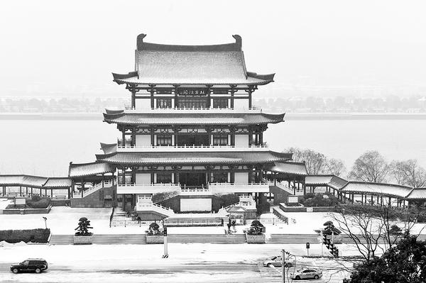俯瞰长沙杜甫江阁(1月28日摄)。当日,湖南长沙大雪“压”城,造成市区能见度差、道路通行受阻。