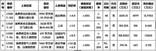 六、竞买保证金到账的截止时间为:2018年3月2日17时(地块编号:LY2017-103)。2018年3月2日17时(地块编号:LY2017-67)。2018年3月2日17时(地块编号:LY2017-96)。2018年3月2日17时(地块编号:LY2017-99)。