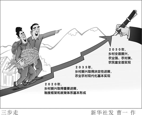 “实施乡村振兴战略,是新时代做好‘三农’工作的总抓手、新旗帜。”中央农办主任韩俊说,“文件按‘远粗近细’原则对实施乡村振兴战略的三个阶段性目标任务作了部署。”