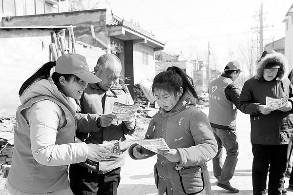 2月5日,商水县供电公司33名结对帮扶队员来到定点扶贫村平店乡刘大庄、赵庄村,开展春节走访慰问活动,为贫困家庭送去了米、面、棉衣等生活用品,并祝愿他们能够早日脱贫,过上幸福日子。图为帮扶队员向群众发放宣传资料。 记者 韩志刚 通讯员 杜放光 赵丽娜 摄