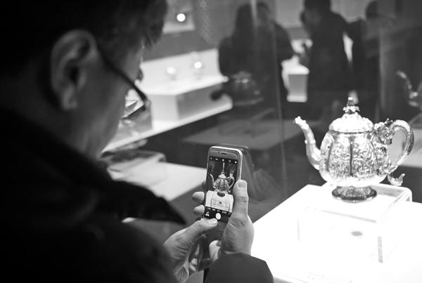 2月6日,观众在沈阳故宫“白银时代——中国外销银器特展”上参观。当日,沈阳故宫博物院与长沙博物馆联合主办的“白银时代——中国外销银器特展”在沈阳故宫博物院开展。本次展览分为:“海外华品”“艺脉千年”“意趣相融”三个部分,共展出精品外销银器105件套,精美的展品吸引许多观众前来参观。新华社发