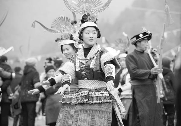 2月6日,贵州省黔东南苗族侗族自治州丹寨县兴仁镇翻仰村迎来传统苗族芦笙会,来自周边村寨的苗族姑娘们盛装打扮,在芦笙场上展示自己精致的刺绣手艺、优美的舞蹈才艺和亮丽的盛装银饰。