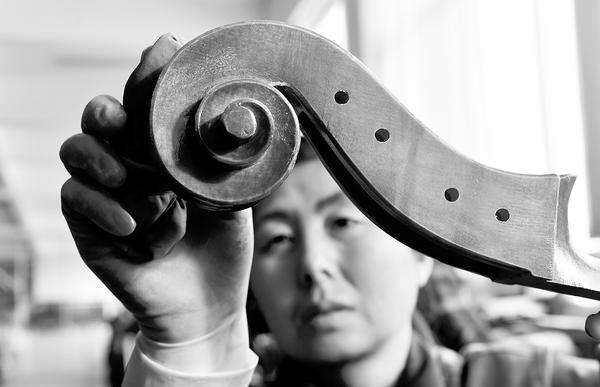 工人在河南昊韵乐器有限公司车间中为琴头刷漆(1月30日摄)。河南对农民工返乡创业投资提供帮扶,确山县在此基础上打造了600亩的提琴产业园。截至目前,提琴产业园已入驻提琴生产企业3家,配套提琴箱包厂1家,年产提琴3万把,产品远销欧美和东南亚,年产值8000多万元。新华社发