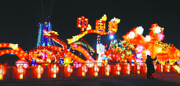 2月20日,游客在衡水市园博园迎春灯会上观赏花灯。