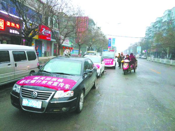 “春节期间,城区燃放烟花爆竹者屈指可数。”这是众多淮阳居民的共识。为做好烟花爆竹禁燃禁放工作,该县成立了工作领导小组,各相关部门坚持“统一领导,分工负责,以块为主,齐抓共管”的原则,采取有效措施,扎实开展烟花爆竹禁燃禁放工作。图为城关回族镇在街头宣传烟花爆竹禁燃禁放通告。(陈明 摄)