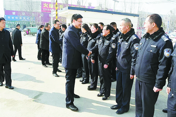 春节期间,开发区党委书记田林、管委会主任王文峰等领导班子成员慰问辖区公安干警,为他们送去节日的祝福和慰问品。②8曹文娟 摄