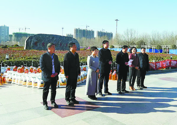 2月12日,省、市人大代表、爱心人士韩平女士到开发区慰问辛勤工作在一线的环卫工人,为环卫工人送去慰问品及新年祝福。②8曹文娟 摄