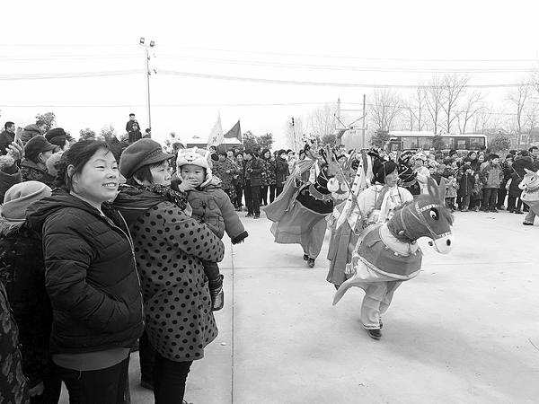 3月1日,农闲季节的郸城县石槽镇张寨行政村群众还在回味年味儿,该县“全民健身,健康郸城”大型演出团来到了这里,小村文化广场瞬间热闹起来。旱船、太极表演、少年武术表演、大鼓书等,让整个广场成为欢乐的海洋。 ①6记者 徐松 摄