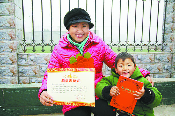 三店镇黄庄村的郑海旺家人拿到了脱贫光荣证,乐得喜上眉梢。黄庄村是项城市妇联的扶贫联系村,市妇联倾力帮扶,补齐了该村的基础设施建设短板,建起了扶贫车间,6户摘掉了贫困户的帽子,领到了脱贫光荣证。 张永久 摄