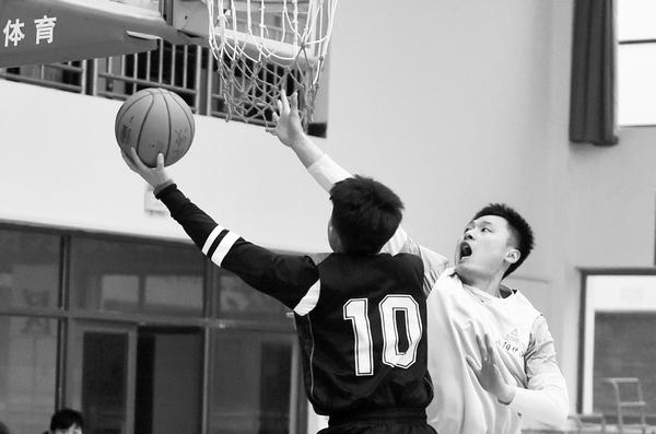 3月4日,洛阳队球员张钊(右)在比赛中防守。