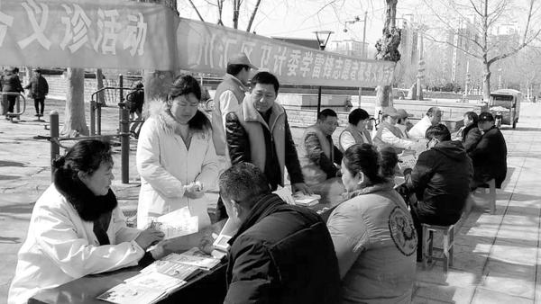3月5日,市中医院医护人员走上街头,参加川汇区卫计委组织开展的学雷锋志愿服务义诊活动,现场宣讲中医知识、发放宣传资料。 黎倩平 摄
