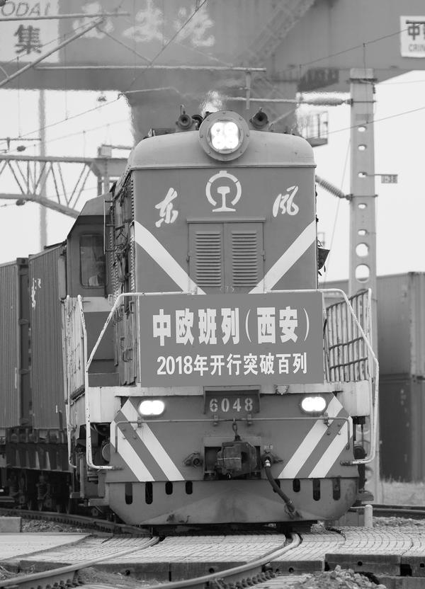 3月7日,X8001次中欧班列从中国铁路西安局集团有限公司新筑车站驶出开往德国汉堡,这标志着2018年陕西中欧班列开行突破100列大关。新华社发