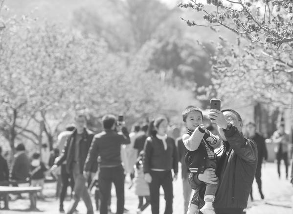 3月11日,一位家长抱着孩子在福建农林大学校内赏花。近日,位于福州的福建农林大学校内鲜花盛开,春意盎然,吸引不少学生和市民前来赏花。新华社发