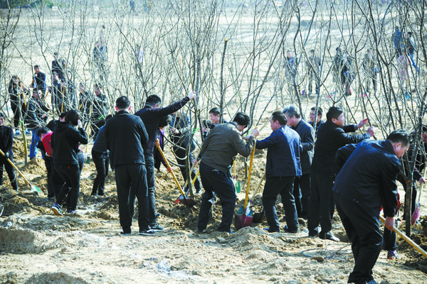 右图 3月12日,西华县组织县直单位干部职工及志愿者开展植树造林活动,为初春的西华增添新绿,正式拉开了全县春季植树造林的序幕。 记者 张猛 通讯员 张思 摄