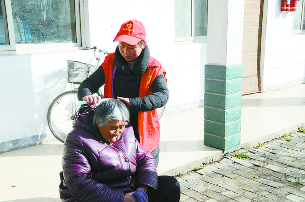 3月5日是“学雷锋日”,也是“中国青年志愿者服务日”。当天,团西华县委来到大王庄乡敬老院开展以“传承雷锋精神、弘扬时代新风”为主题的关爱孤寡老人志愿者服务活动。图为志愿者在为老人梳头。 张思 摄